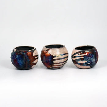 Sold out - Tsuchi Ceramic Raku Pottery Planter Pot 10CM Wide Finish Set of 3