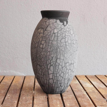 - RAAQUU Large Oval Ceramic Vase Smoked Raku S/N0000866 13.5" Raku Pottery