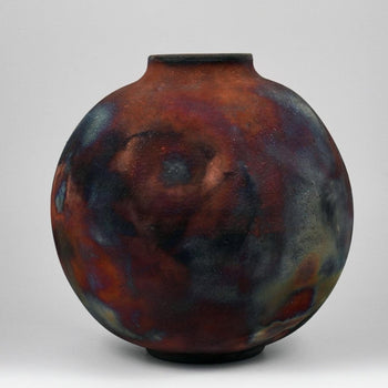 - RAAQUU Large Globe Ceramic Vase Full Copper Matte S/N0000915 11" Raku Pottery