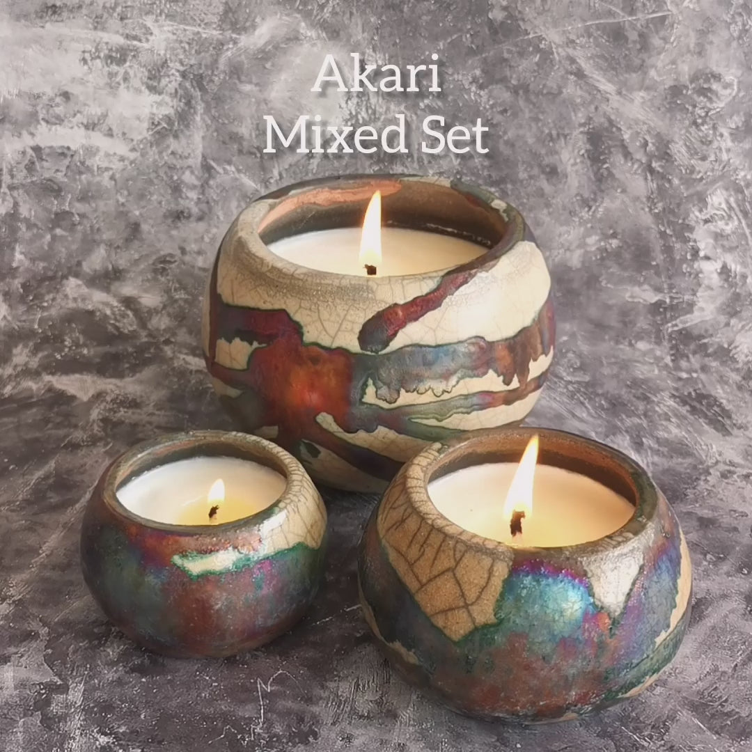 Hono Raku Pottery Refillable Scented Soy Wax Candle with 3 Wicks
