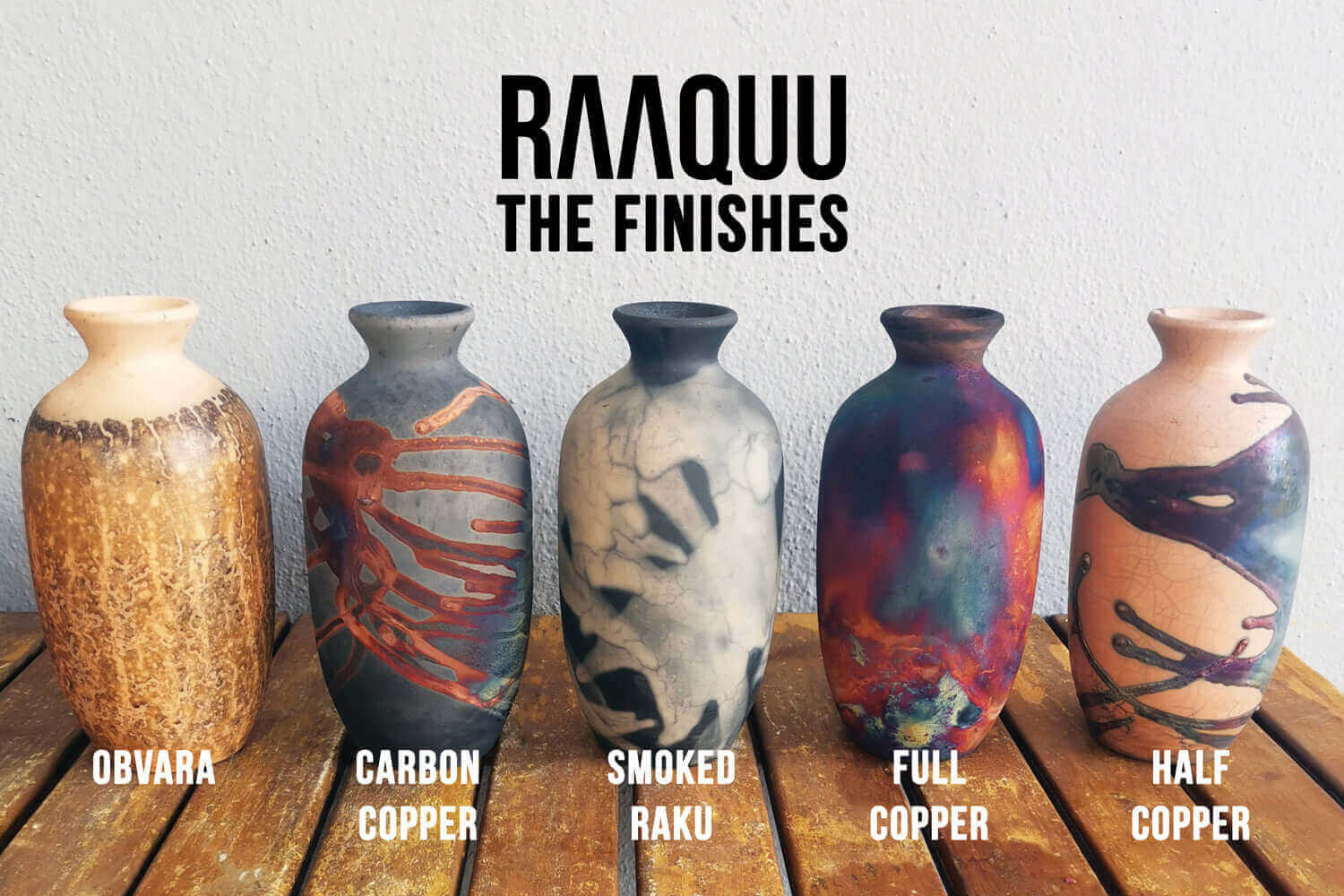 My Koban vase comes with the 5 finishes displayed here ; Obvara, Carbon Copper, Smoked Raku, Full Copper and Half Copper. Every RAAQUU piece is one of a kind due to the firing process.